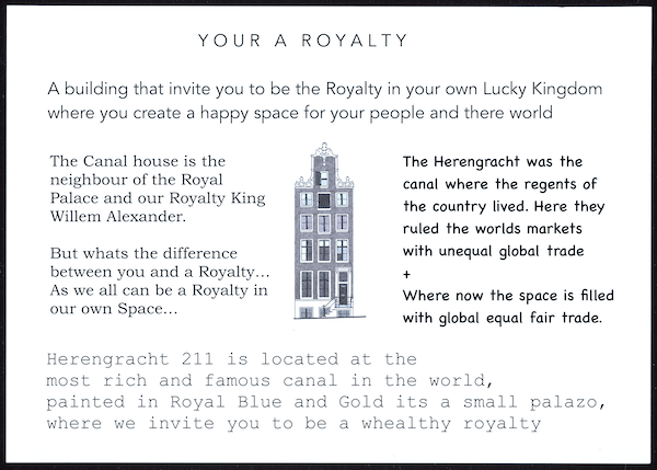 Its in the oldest part of the canal district build in the days the Dutchies ruling the world trade by the people that where part of the Dutch Dynastie. On the ground floor they lived there Royal Living while there expensive products where stored on the upper floors.